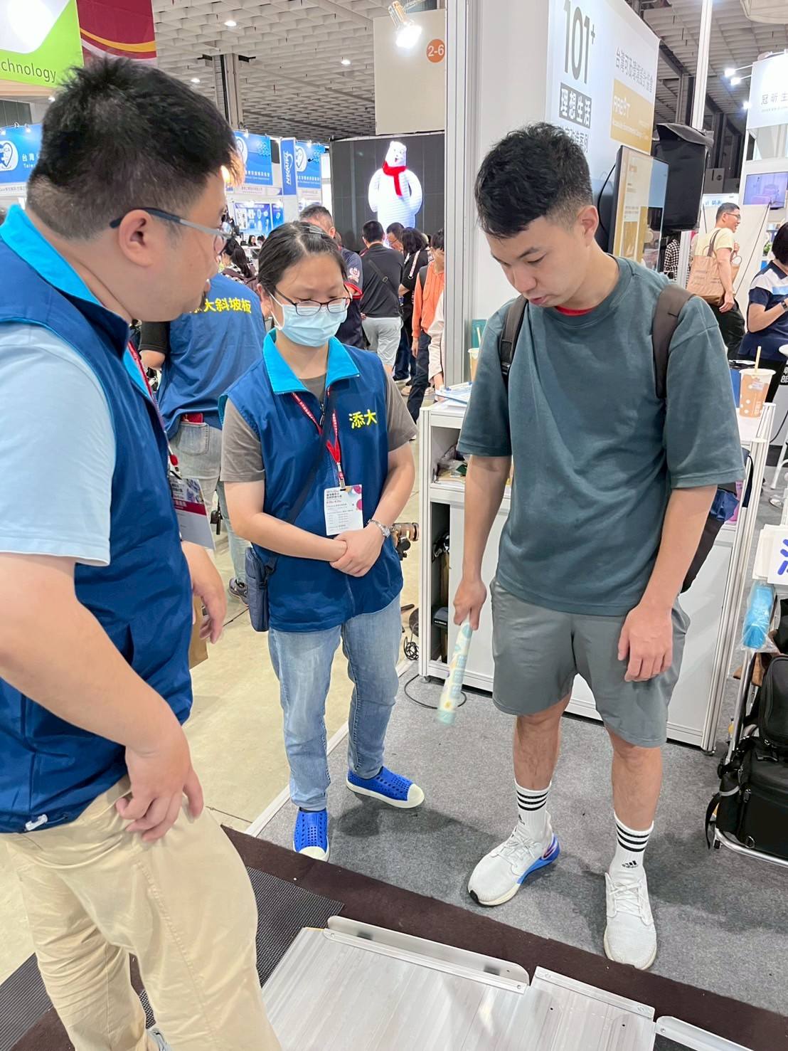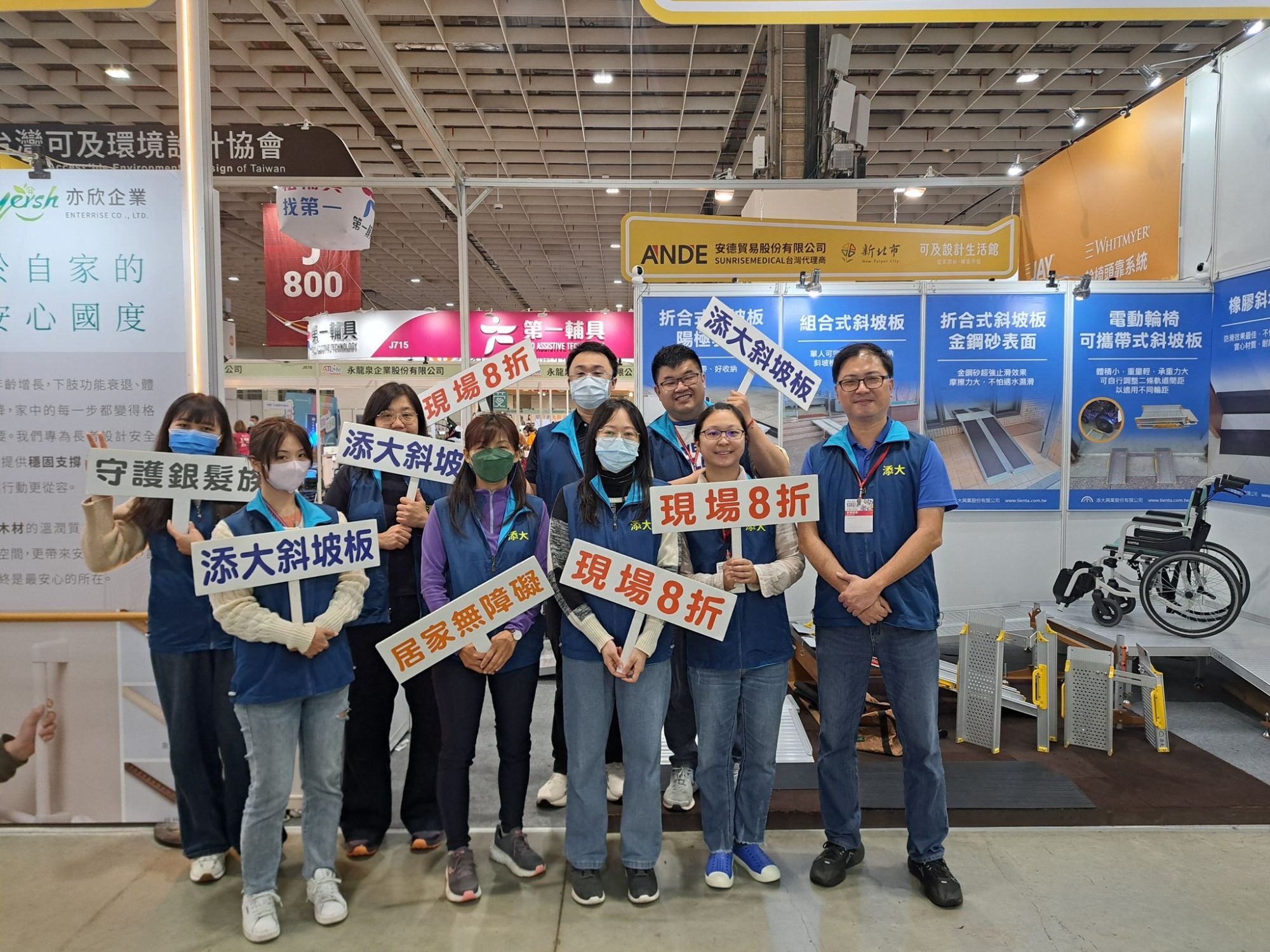 此外,為感謝現場支持,添大推出「現場購買斜坡板享8折優惠」活動,並準備限量贈品小禮物,創造與民眾溫馨互動的橋樑。展覽第四天,更有多位業界長照機構負責人主動洽談合作,顯見添大斜坡板產品在實務應用上的高度信賴度與口碑。